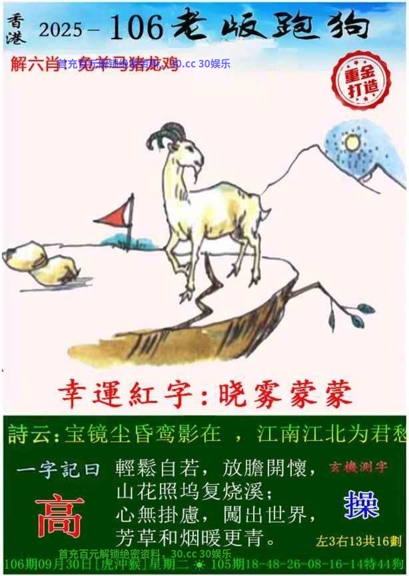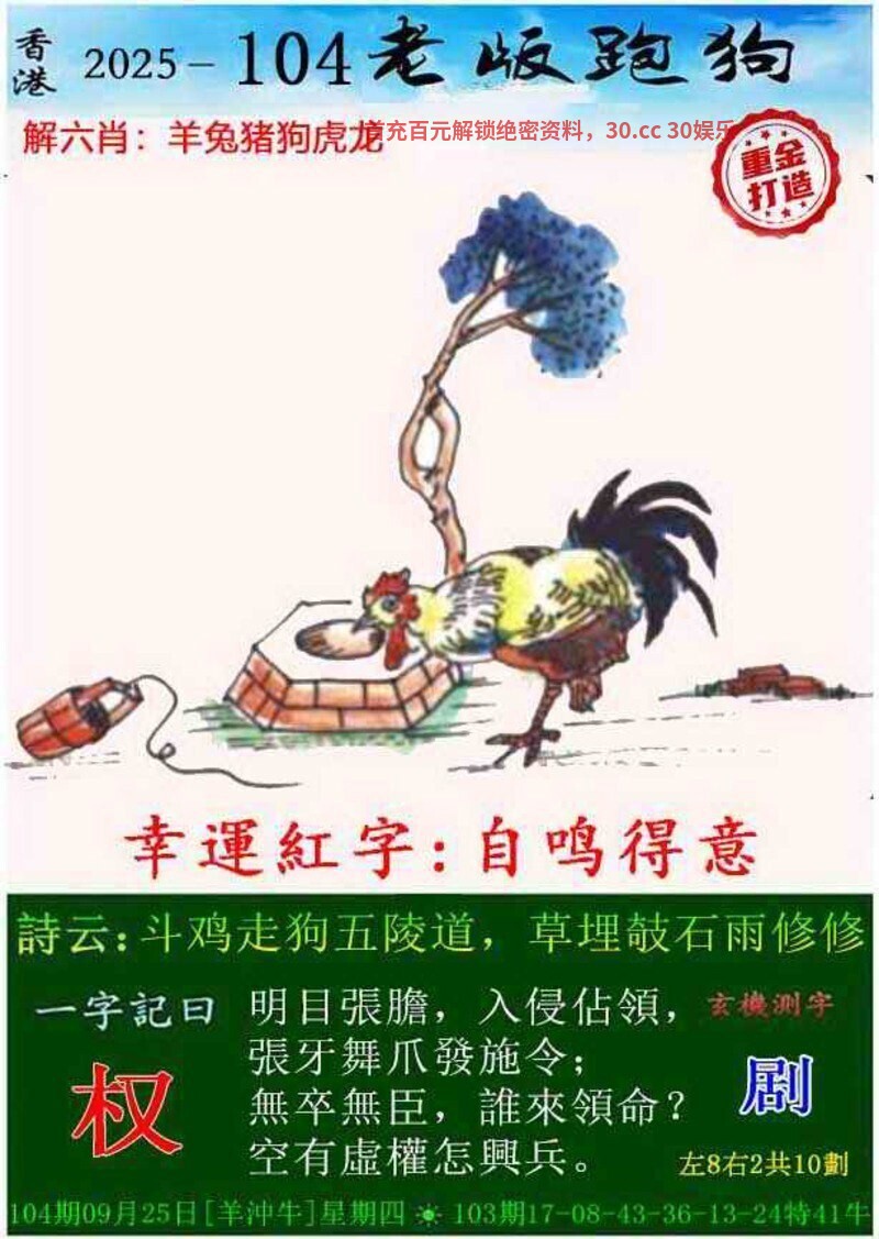 104期:今期鼠龙猴看定,特碼旺大和双出开狗32准 ①杀肖:羊马鸡 ③大数+双数 |